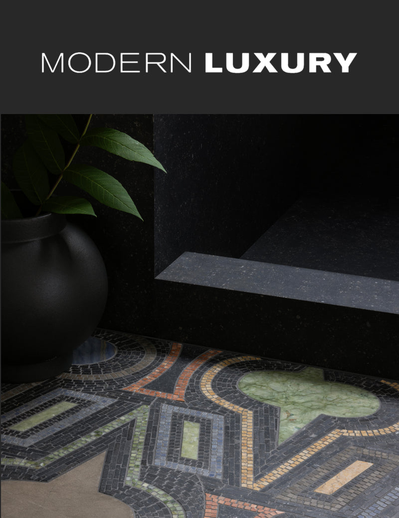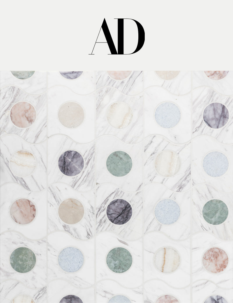 Artistic Tile’s Spot On by Michelle Gerson brings playful geometry and luxurious texture to the pages of Architectural Digest. Featured in the magazine’s “Baths” story, the mosaic captures the balance of modern pattern and timeless stone that defines Milanese-inspired design.
